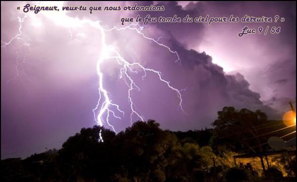 « Seigneur, veux-tu que nous ordonnions qu’un feu tombe du ciel et les détruise ? » Mais Jésus, se retournant, les réprimanda. Lc 9, 54-55