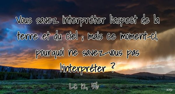 Hypocrites ! Vous savez interpréter l’aspect de la terre et du ciel ; mais ce moment-ci, pourquoi ne savez-vous pas l’interpréter ? Lc 12, 56