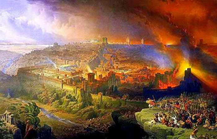 Encore un autre signe : un signe pour la fin du Temple et pour la fin du monde. Quand vous verrez l’abomination de la désolation prédite par Daniel — que celui qui m’écoute comprenne, et que celui qui lit le prophète sache lire entre les lignes —, alors que celui qui sera en Judée s’enfuie sur les montagnes, que celui qui sera sur sa terrasse ne descende pas prendre ce qu’il a dans sa maison, que celui qui est dans son champ ne revienne pas chez lui prendre son manteau : il lui faudra fuir sans se retourner, pour qu’il ne lui arrive pas de ne plus pouvoir le faire. Dans sa fuite, il ne devra pas se retourner par curiosité, pour ne pas garder dans son cœur cet horrible spectacle et en devenir fou. Malheur à celles qui seront enceintes et qui allaiteront en ces jours ! Et malheur si cette fuite devait s’accomplir pendant le sabbat ! S’enfuir ne suffirait pas pour se sauver sans pécher.