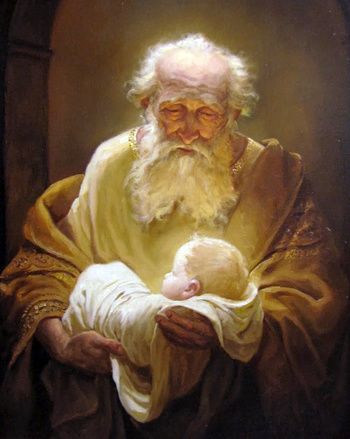 Vois, Maria, voyez, mes enfants : Syméon a attendu toute une longue vie avant de “ voir la Lumière ”, avant de savoir que la promesse de Dieu était accomplie. Mais il n’a jamais douté. Jamais il ne s’est dit : “ Il est inutile que je persévère dans l’espérance et la prière. ” Il a persévéré. Et il a obtenu de “ voir ” ce que n’ont pas vu le prêtre et les membres du Sanhédrin bouffis d’orgueil et aveuglés : le Fils de Dieu, le Messie, le Sauveur, dans ce corps d’enfant qui lui donnait tiédeur et sourire. Par mes lèvres de bébé, il a reçu le sourire de Dieu en guise de première récompense pour sa vie honnête et pieuse. Tome 1 – ch 37.2