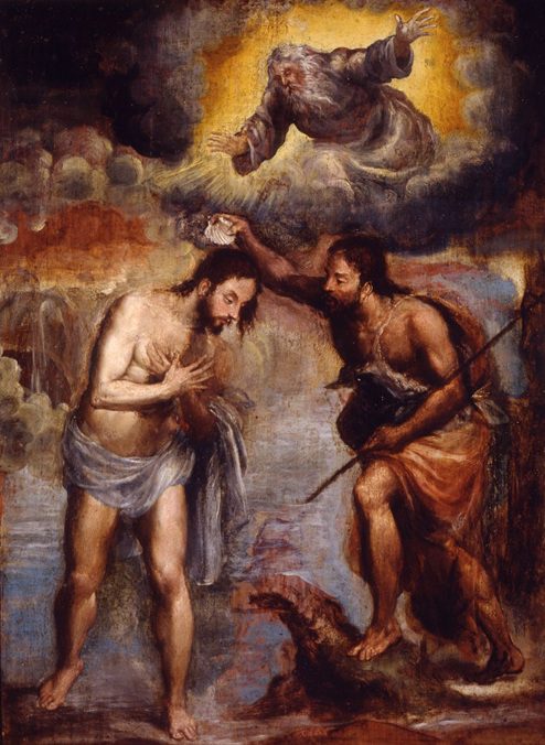 Alors paraît Jésus. Il était venu de Galilée jusqu’au Jourdain auprès de Jean, pour être baptisé par lui. Jean voulait l’en empêcher et disait : « C’est moi qui ai besoin d’être baptisé par toi, et c’est toi qui viens à moi ! » Mais Jésus lui répondit : « Laisse faire pour le moment, car il convient que nous accomplissions ainsi toute justice. » Alors Jean le laisse faire. Dès que Jésus fut baptisé, il remonta de l’eau, et voici que les cieux s’ouvrirent : il vit l’Esprit de Dieu descendre comme une colombe et venir sur lui. Et des cieux, une voix disait : « Celui-ci est mon Fils bien-aimé en qui je trouve ma joie. »