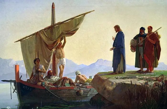 Quand Jésus apprit l’arrestation de Jean le Baptiste, il se retira en Galilée. Il quitta Nazareth et vint habiter à Capharnaüm, ville située au bord de la mer de Galilée, dans les territoires de Zabulon et de Nephtali. C’était pour que soit accomplie la parole prononcée par le prophète Isaïe : Pays de Zabulon et pays de Nephtali, route de la mer et pays au-delà du Jourdain, Galilée des nations ! Le peuple qui habitait dans les ténèbres a vu une grande lumière. Sur ceux qui habitaient dans le pays et l’ombre de la mort, une lumière s’est levée. À partir de ce moment, Jésus commença à proclamer : « Convertissez-vous, car le royaume des Cieux est tout proche. » Comme il marchait le long de la mer de Galilée, il vit deux frères, Simon, appelé Pierre, et son frère André, qui jetaient leurs filets dans la mer ; car c’étaient des pêcheurs. Jésus leur dit : « Venez à ma suite, et je vous ferai pêcheurs d’hommes. » Aussitôt, laissant leurs filets, ils le suivirent. De là, il avança et il vit deux autres frères, Jacques, fils de Zébédée, et son frère Jean, qui étaient dans la barque avec leur père, en train de réparer leurs filets. Il les appela. Aussitôt, laissant la barque et leur père, ils le suivirent. Jésus parcourait toute la Galilée ; il enseignait dans leurs synagogues, proclamait l’Évangile du Royaume, guérissait toute maladie et toute infirmité dans le peuple.
