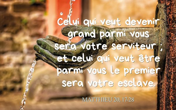 En ce temps-là, Jésus, montant à Jérusalem, prit à part les Douze disciples et, en chemin, il leur dit : « Voici que nous montons à Jérusalem. Le Fils de l’homme sera livré aux grands prêtres et aux scribes, ils le condamneront à mort et le livreront aux nations païennes pour qu’elles se moquent de lui, le flagellent et le crucifient ; le troisième jour, il ressuscitera. » Alors la mère des fils de Zébédée s’approcha de Jésus avec ses fils Jacques et Jean, et elle se prosterna pour lui faire une demande. Jésus lui dit : « Que veux-tu ? » Elle répondit : « Ordonne que mes deux fils que voici siègent, l’un à ta droite et l’autre à ta gauche, dans ton Royaume. » Jésus répondit : « Vous ne savez pas ce que vous demandez. Pouvez-vous boire la coupe que je vais boire ? » Ils lui disent : « Nous le pouvons. » Il leur dit : « Ma coupe, vous la boirez ; quant à siéger à ma droite et à ma gauche, ce n’est pas à moi de l’accorder ; il y a ceux pour qui cela est préparé par mon Père. » Les dix autres, qui avaient entendu, s’indignèrent contre les deux frères. Jésus les appela et dit : « Vous le savez : les chefs des nations les commandent en maîtres, et les grands font sentir leur pouvoir. Parmi vous, il ne devra pas en être ainsi : celui qui veut devenir grand parmi vous sera votre serviteur ; et celui qui veut être parmi vous le premier sera votre esclave. Ainsi, le Fils de l’homme n’est pas venu pour être servi, mais pour servir, et donner sa vie en rançon pour la multitude. »