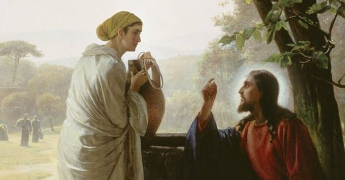 En ce temps-là, Jésus arriva à une ville de Samarie, appelée Sykar, près du terrain que Jacob avait donné à son fils Joseph. Là se trouvait le puits de Jacob. Jésus, fatigué par la route, s’était donc assis près de la source. C’était la sixième heure, environ midi. Arrive une femme de Samarie, qui venait puiser de l’eau. Jésus lui dit : « Donne-moi à boire. » – En effet, ses disciples étaient partis à la ville pour acheter des provisions. La Samaritaine lui dit : « Comment ! Toi, un Juif, tu me demandes à boire, à moi, une Samaritaine ? » – En effet, les Juifs ne fréquentent pas les Samaritains. Jésus lui répondit : « Si tu savais le don de Dieu et qui est celui qui te dit : ‘Donne-moi à boire’, c’est toi qui lui aurais demandé, et il t’aurait donné de l’eau vive. » Elle lui dit : « Seigneur, tu n’as rien pour puiser, et le puits est profond. D’où as-tu donc cette eau vive ? Serais-tu plus grand que notre père Jacob qui nous a donné ce puits, et qui en a bu lui-même, avec ses fils et ses bêtes ? » Jésus lui répondit : « Quiconque boit de cette eau aura de nouveau soif ; mais celui qui boira de l’eau que moi je lui donnerai n’aura plus jamais soif ; et l’eau que je lui donnerai deviendra en lui une source d’eau jaillissant pour la vie éternelle. » La femme lui dit : « Seigneur, donne-moi de cette eau, que je n’aie plus soif, et que je n’aie plus à venir ici pour puiser. » Jésus lui dit : « Va, appelle ton mari, et reviens. » La femme répliqua : « Je n’ai pas de mari. » Jésus reprit : « Tu as raison de dire que tu n’as pas de mari : des maris, tu en a eu cinq, et celui que tu as maintenant n’est pas ton mari ; là, tu dis vrai. » La femme lui dit : « Seigneur, je vois que tu es un prophète !… Eh bien ! Nos pères ont adoré sur la montagne qui est là, et vous, les Juifs, vous dites que le lieu où il faut adorer est à Jérusalem. » Jésus lui dit : « Femme, crois-moi : l’heure vient où vous n’irez plus ni sur cette montagne ni à Jérusalem pour adorer le Père. Vous, vous adorez ce que vous ne connaissez pas ; nous, nous adorons ce que nous connaissons, car le salut vient des Juifs. Mais l’heure vient – et c’est maintenant – où les vrais adorateurs adoreront le Père en esprit et vérité : tels sont les adorateurs que recherche le Père. Dieu est esprit, et ceux qui l’adorent, c’est en esprit et vérité qu’ils doivent l’adorer. » La femme lui dit : « Je sais qu’il vient, le Messie, celui qu’on appelle Christ. Quand il viendra, c’est lui qui nous fera connaître toutes choses. » Jésus lui dit : « Je le suis, moi qui te parle. » À ce moment-là, ses disciples arrivèrent ; ils étaient surpris de le voir parler avec une femme. Pourtant, aucun ne lui dit : « Que cherches-tu ? » ou bien : « Pourquoi parles-tu avec elle ? » La femme, laissant là sa cruche, revint à la ville et dit aux gens : « Venez voir un homme qui m’a dit tout ce que j’ai fait. Ne serait-il pas le Christ ? » Ils sortirent de la ville, et ils se dirigeaient vers lui. Entre-temps, les disciples l’appelaient : « Rabbi, viens manger. » Mais il répondit : « Pour moi, j’ai de quoi manger : c’est une nourriture que vous ne connaissez pas. » Les disciples se disaient entre eux : « Quelqu’un lui aurait-il apporté à manger ? » Jésus leur dit : « Ma nourriture, c’est de faire la volonté de Celui qui m’a envoyé et d’accomplir son œuvre. Ne dites-vous pas : ‘Encore quatre mois et ce sera la moisson’ ? Et moi, je vous dis : Levez les yeux et regardez les champs déjà dorés pour la moisson. Dès maintenant, le moissonneur reçoit son salaire : il récolte du fruit pour la vie éternelle, si bien que le semeur se réjouit en même temps que le moissonneur. Il est bien vrai, le dicton : ‘L’un sème, l’autre moissonne.’ Je vous ai envoyés moissonner ce qui ne vous a coûté aucun effort ; d’autres ont fait l’effort, et vous en avez bénéficié. » Beaucoup de Samaritains de cette ville crurent en Jésus, à cause de la parole de la femme qui rendait ce témoignage : « Il m’a dit tout ce que j’ai fait. » Lorsqu’ils arrivèrent auprès de lui, ils l’invitèrent à demeurer chez eux. Il y demeura deux jours. Ils furent encore beaucoup plus nombreux à croire à cause de sa parole à lui, et ils disaient à la femme : « Ce n’est plus à cause de ce que tu nous as dit que nous croyons : nous-mêmes, nous l’avons entendu, et nous savons que c’est vraiment lui le Sauveur du monde. »