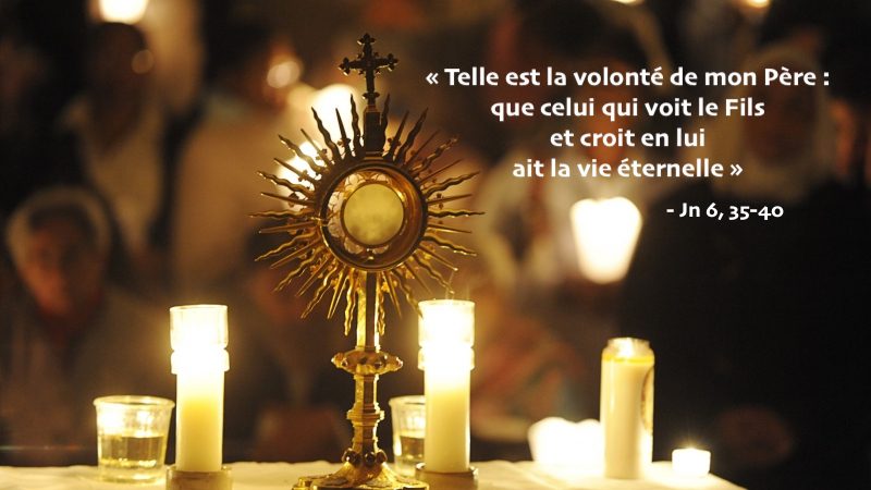 En ce temps-là, Jésus disait aux foules : « Moi, je suis le pain de la vie. Celui qui vient à moi n’aura jamais faim ; celui qui croit en moi n’aura jamais soif. Mais je vous l’ai déjà dit : vous avez vu, et pourtant vous ne croyez pas. Tous ceux que me donne le Père viendront jusqu’à moi ; et celui qui vient à moi, je ne vais pas le jeter dehors. Car je suis descendu du ciel pour faire non pas ma volonté, mais la volonté de Celui qui m’a envoyé. Or, telle est la volonté de Celui qui m’a envoyé : que je ne perde aucun de ceux qu’il m’a donnés, mais que je les ressuscite au dernier jour. Telle est la volonté de mon Père : que celui qui voit le Fils et croit en lui ait la vie éternelle ; et moi, je le ressusciterai au dernier jour. »