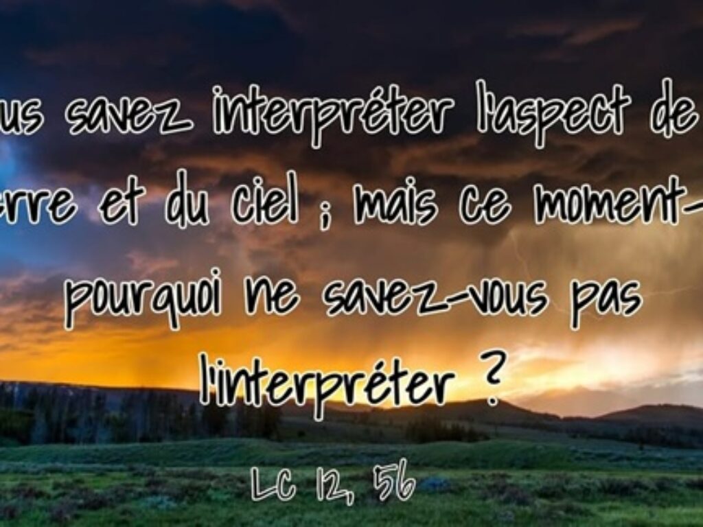 De l’Évangile de Luc 12, 54-59 En ce temps-là, Jésus disait aux foules : « Quand vous voyez un nuage monter au couchant, vous dites aussitôt qu’il va pleuvoir, et c’est ce qui arrive. Et quand vous voyez souffler le vent du sud, vous dites qu’il fera une chaleur torride, et cela arrive. Hypocrites ! […]